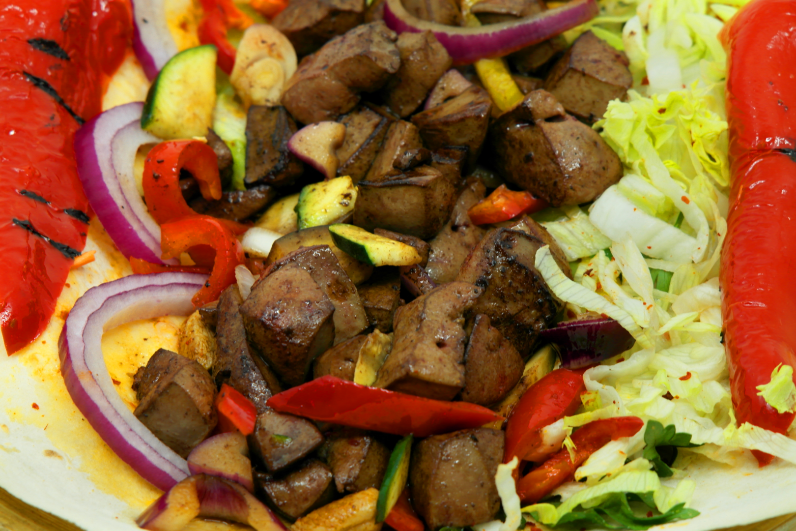 Leber Teller mit Pommes, Reis oder Salat.
