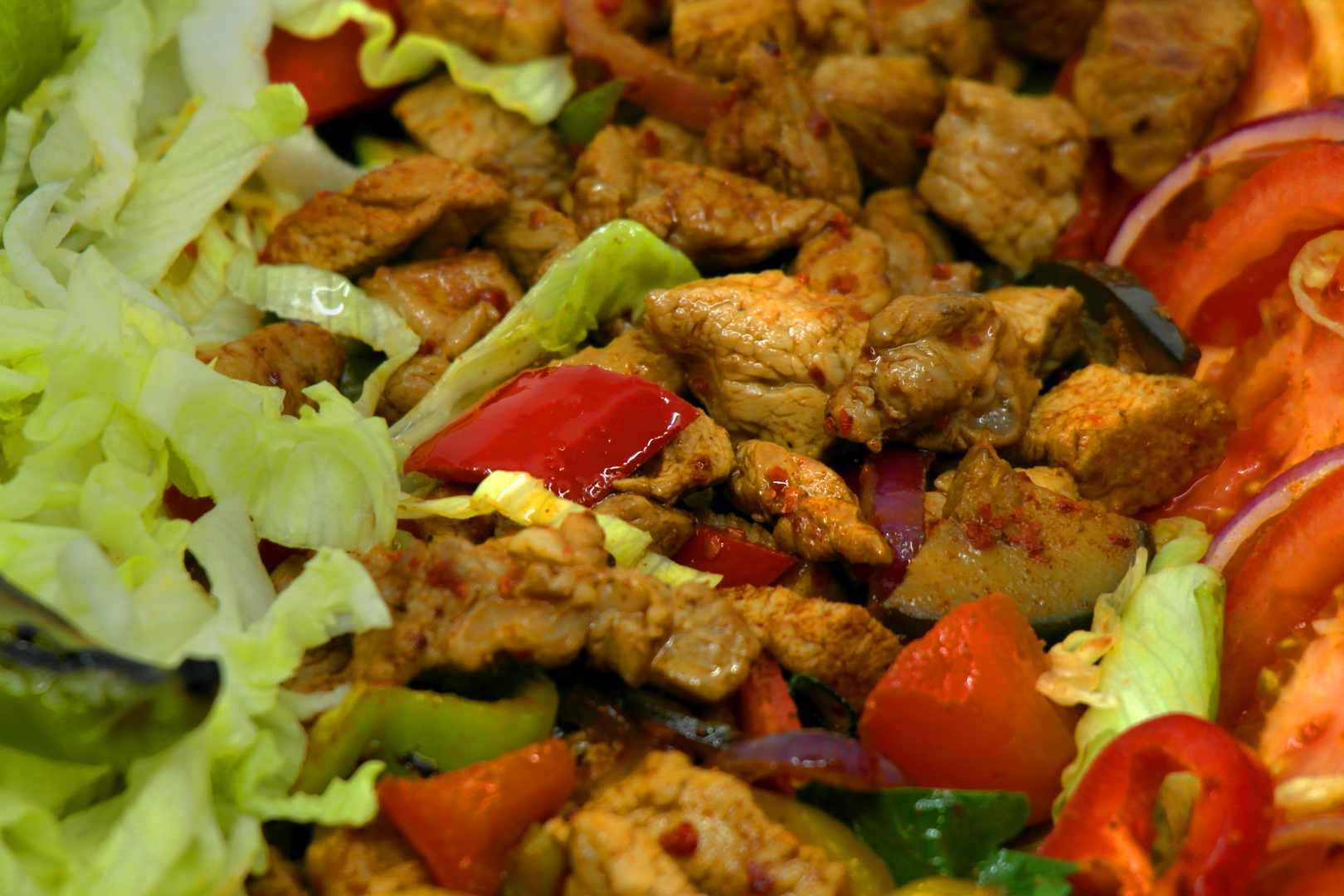 Rind Teller mit Pommes, Reis oder Salat.